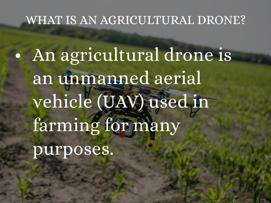 • An agricultural drone is an unmanned aerial vehicle (UAV) used in farming for many purposes.