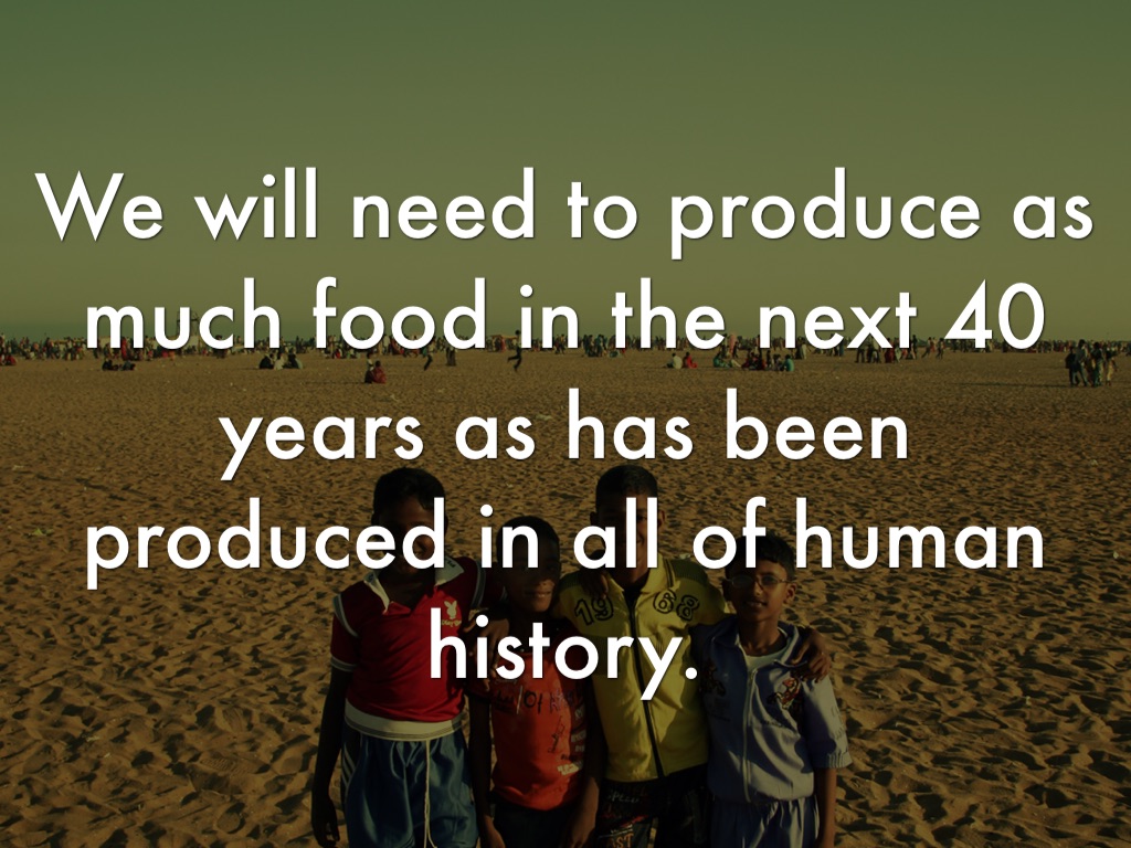 We will need to produce as much food in the next 40 years as has been produced in all of human history.