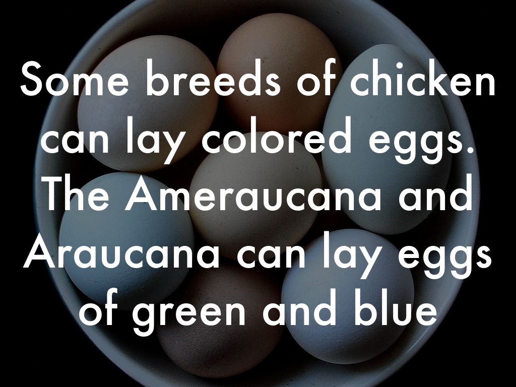 Some breeds of chicken can lay colored eggs. The Ameraucana and Araucana can lay eggs of green and blue