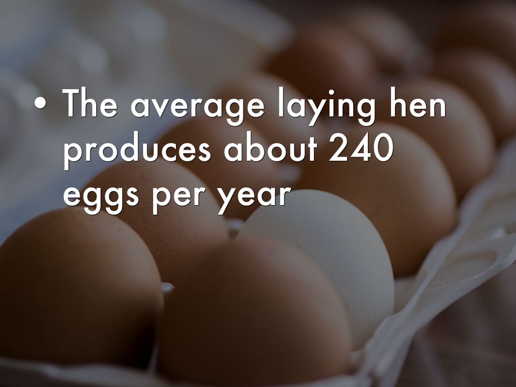 The average laying hen produces about 240 eggs per year