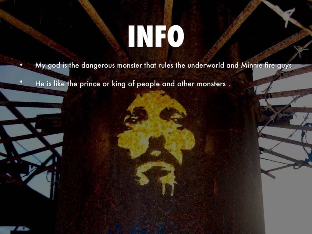 My god is the dangerous monster that rules the underworld and Minnie fire guys .