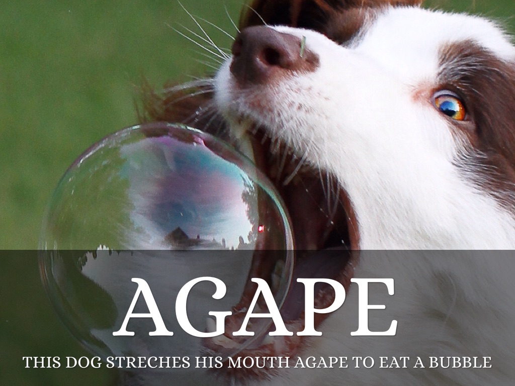THIS DOG STRECHES HIS MOUTH AGAPE TO EAT A BUBBLE