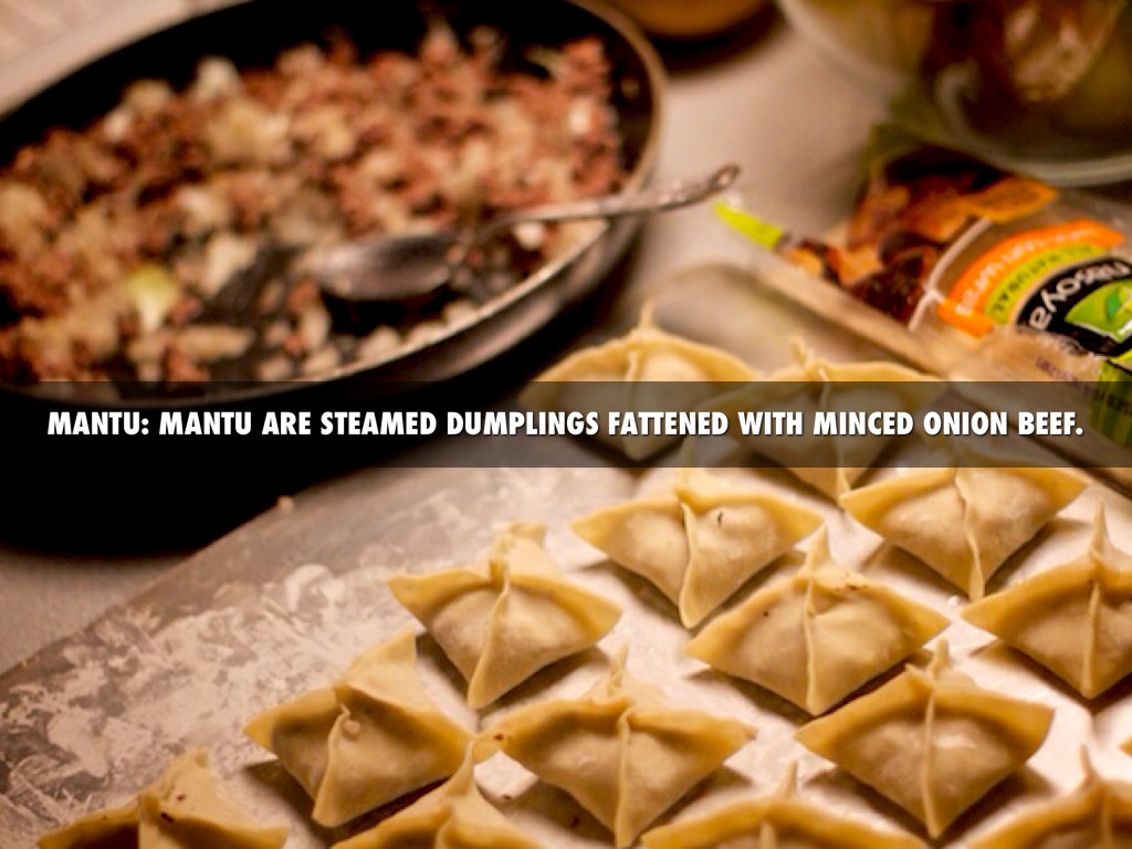 Mantu: Mantu are steamed dumplings fattened with minced onion beef.