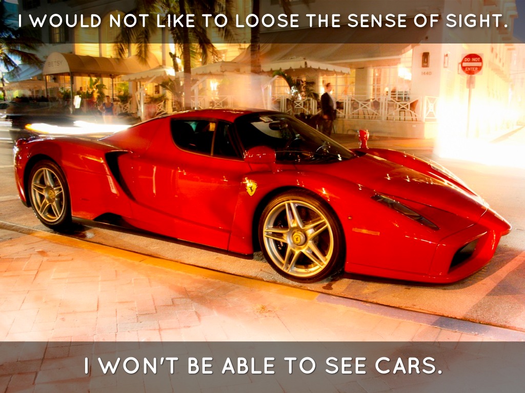I WOULD NOT LIKE TO LOOSE THE SENSE OF SIGHT.