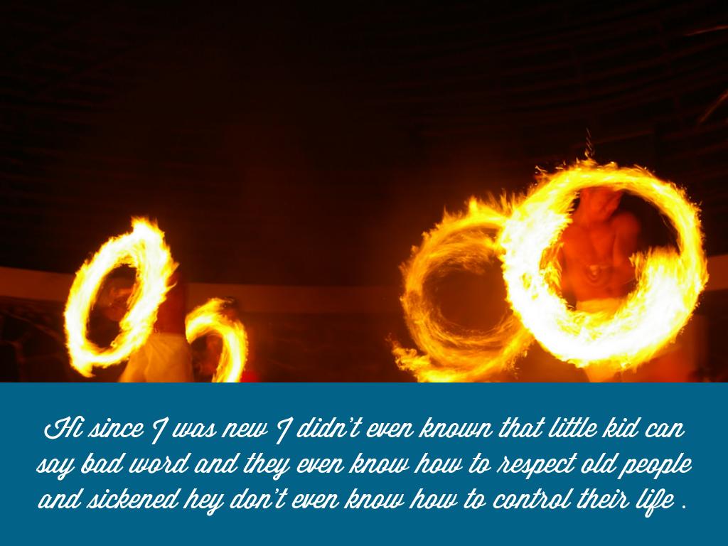 Hi since I was new I didn't even known that little kid can say bad word and they even know how to respect old people and sickened hey don't even know how to control their life .