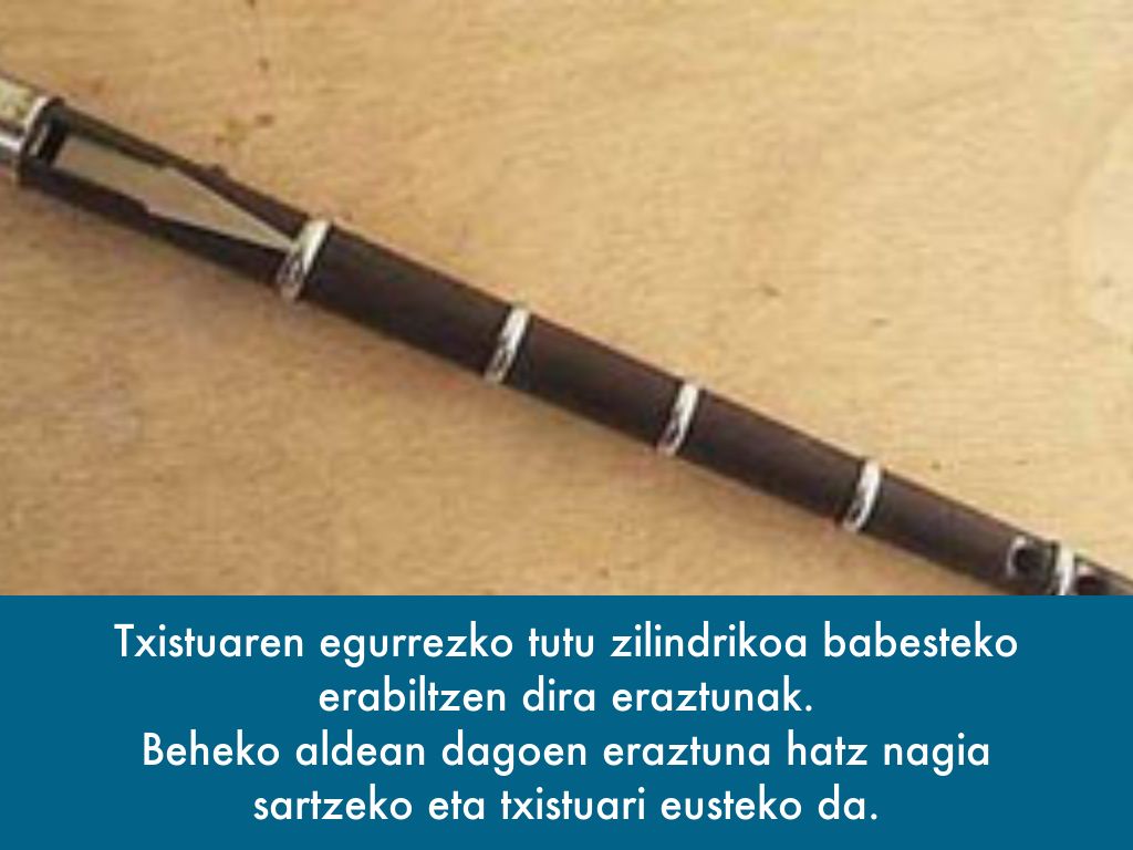 Txistuaren egurrezko tutu zilindrikoa babesteko erabiltzen dira eraztunak.