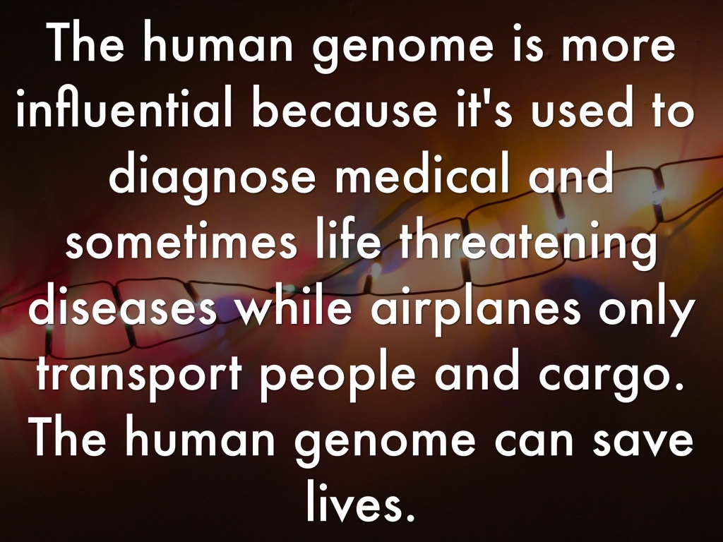 The human genome is more influential because it's used to diagnose medical and sometimes life threatening diseases while airplanes only transport people and cargo. The human genome can save lives.