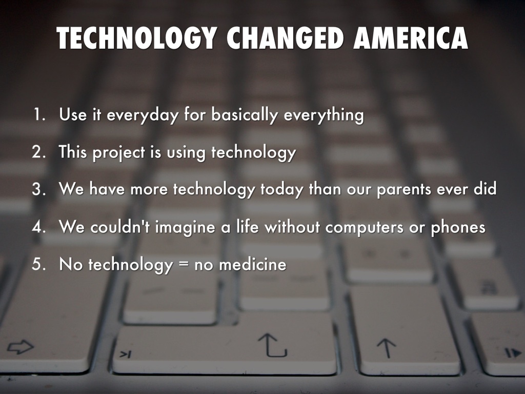 Technology has influenced America because everyday people are using technology to find new information quickly and easily. Technology is used for many things like phones, computers, etc. Now imagine living without your phone. You would actually have to look things up in a book!
