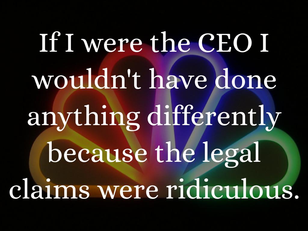 If I were the CEO I wouldn't have done anything differently because the legal claims were ridiculous.