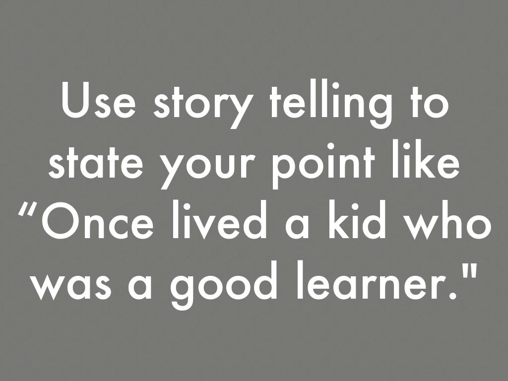Use story telling to state your point like “Once lived a kid who was a good learner."