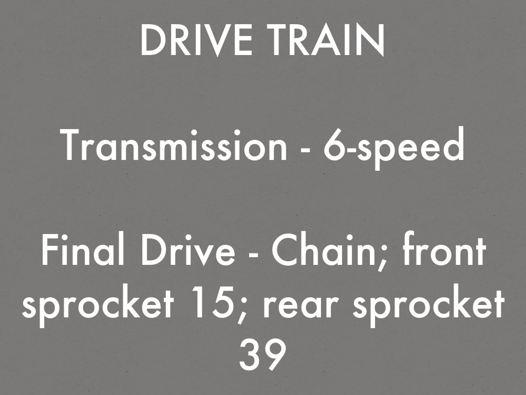 Final Drive - Chain; front sprocket 15; rear sprocket 39