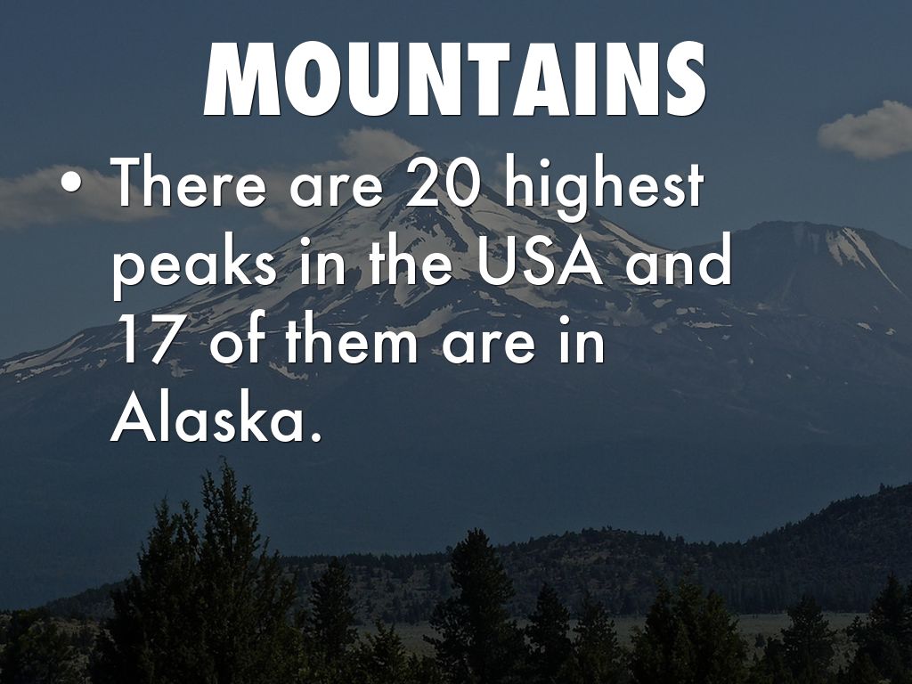 • There are 20 highest peaks in the USA and 17 of them are in Alaska.