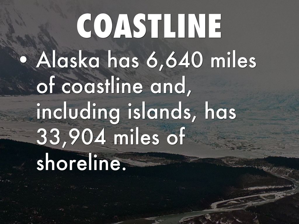 • Alaska has 6,640 miles of coastline and, including islands, has 33,904 miles of shoreline.