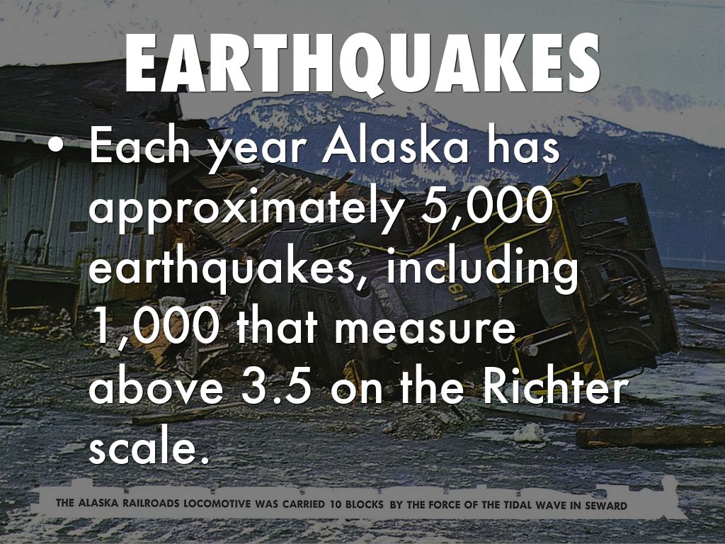 • Each year Alaska has approximately 5,000 earthquakes, including 1,000 that measure above 3.5 on the Richter scale.