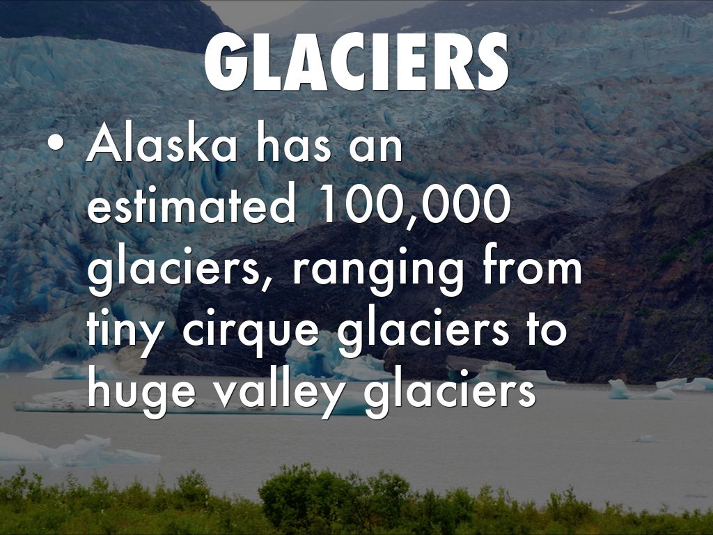 • Alaska has an estimated 100,000 glaciers, ranging from tiny cirque glaciers to huge valley glaciers