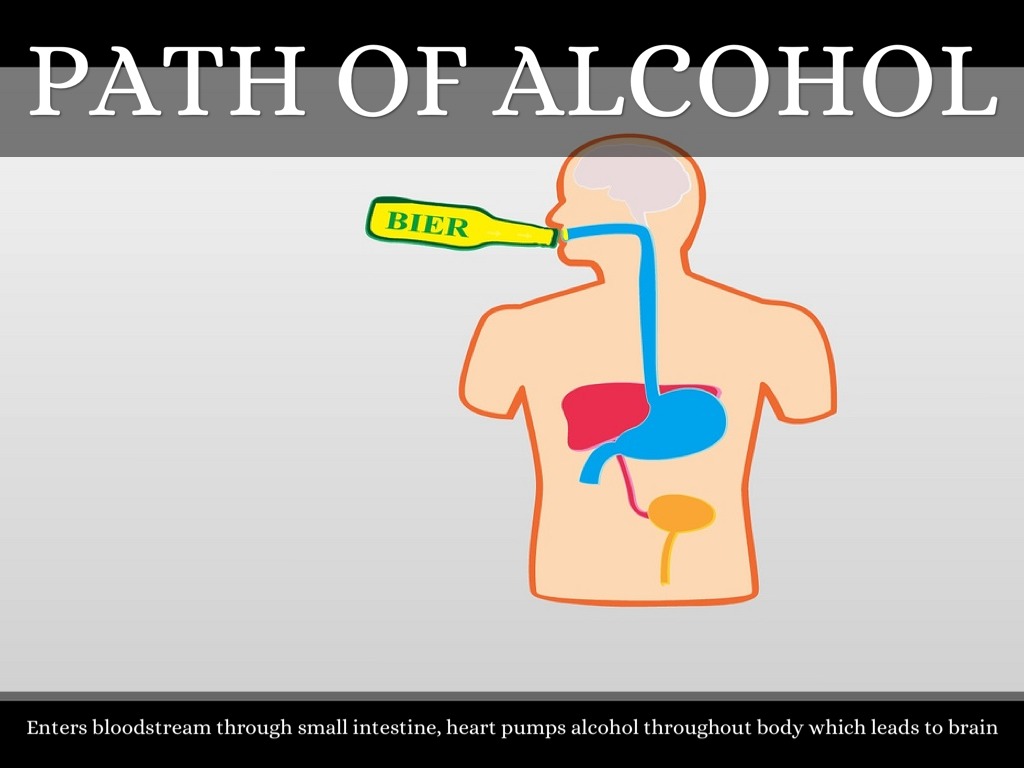 Enters bloodstream through small intestine, heart pumps alcohol throughout body which leads to brain