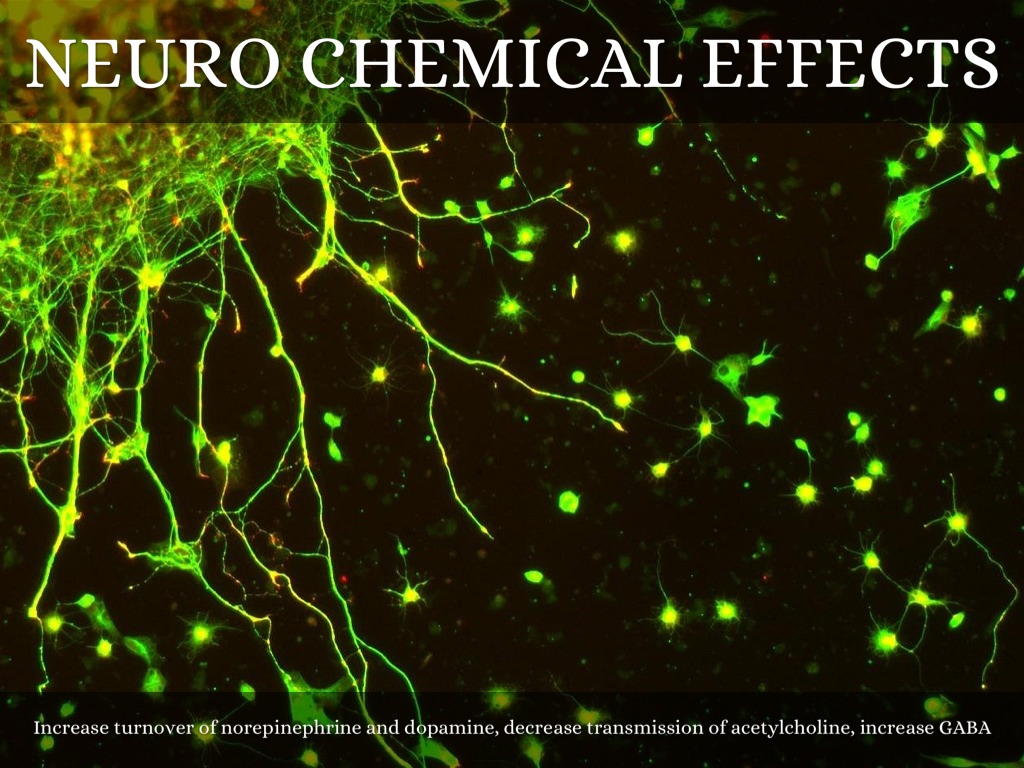 Increase turnover of norepinephrine and dopamine, decrease transmission of acetylcholine, increase GABA