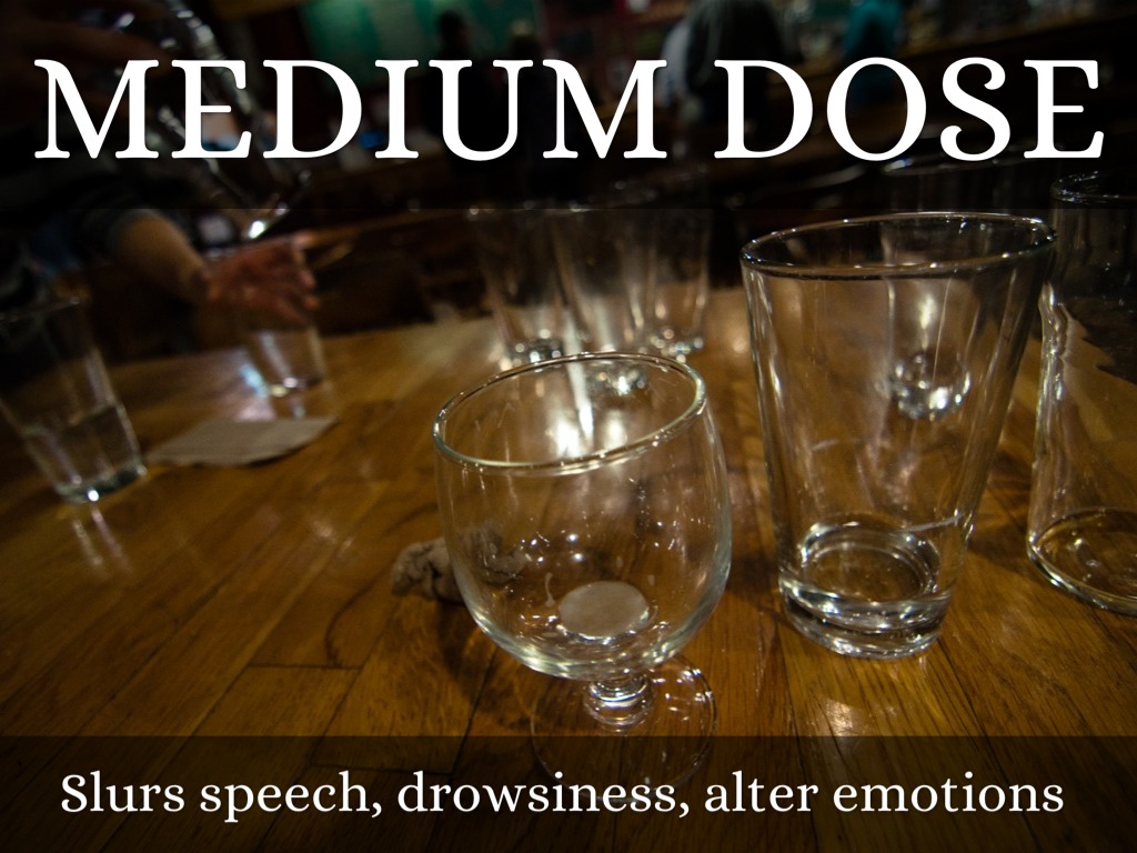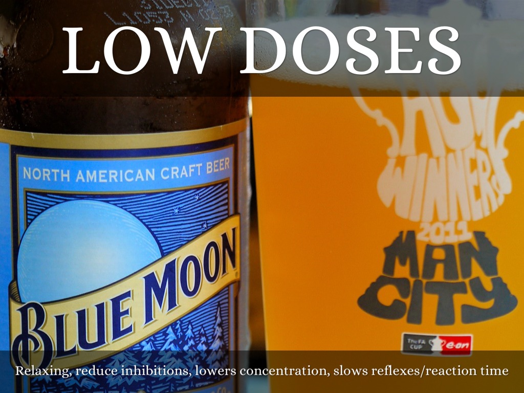 Relaxing, reduce inhibitions, lowers concentration, slows reflexes/reaction time