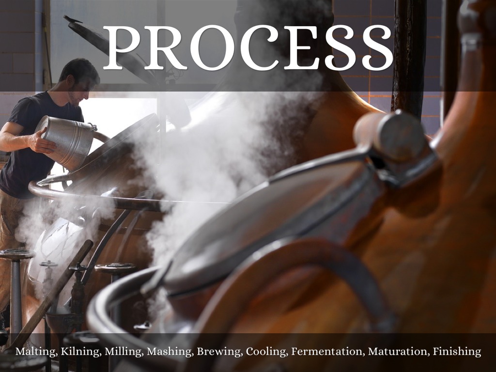 Malting, Kilning, Milling, Mashing, Brewing, Cooling, Fermentation, Maturation, Finishing