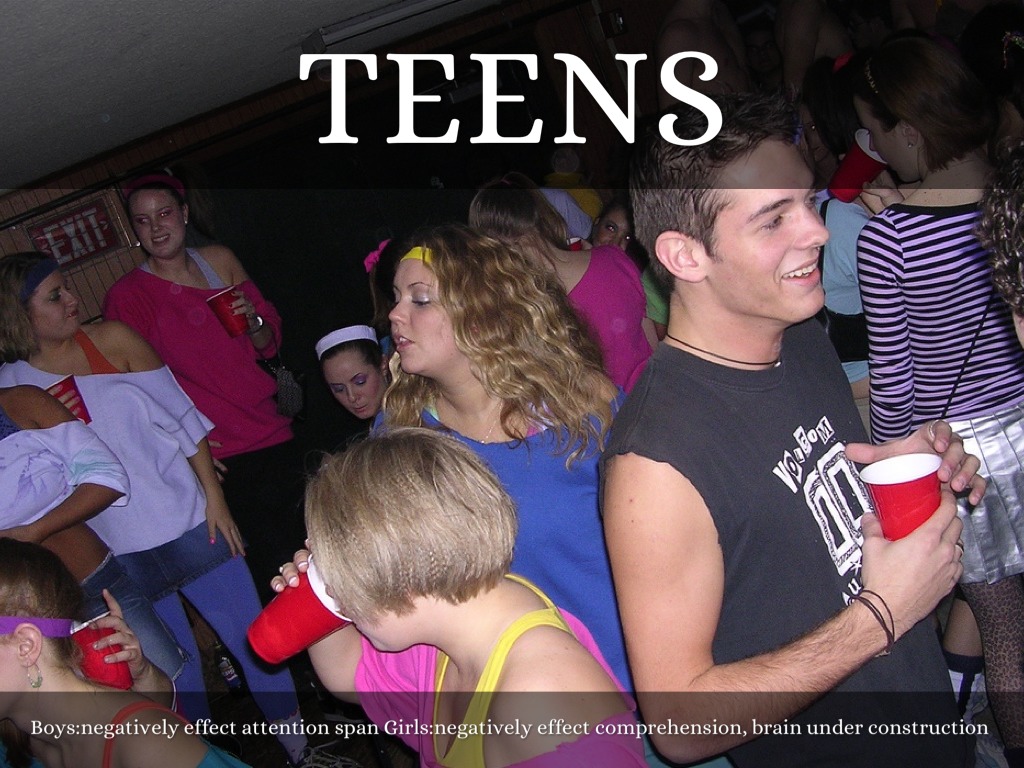Boys:negatively effect attention span Girls:negatively effect comprehension, brain under construction
