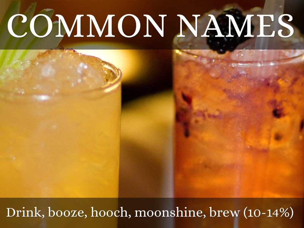 Drink, booze, hooch, moonshine, brew (10-14%)