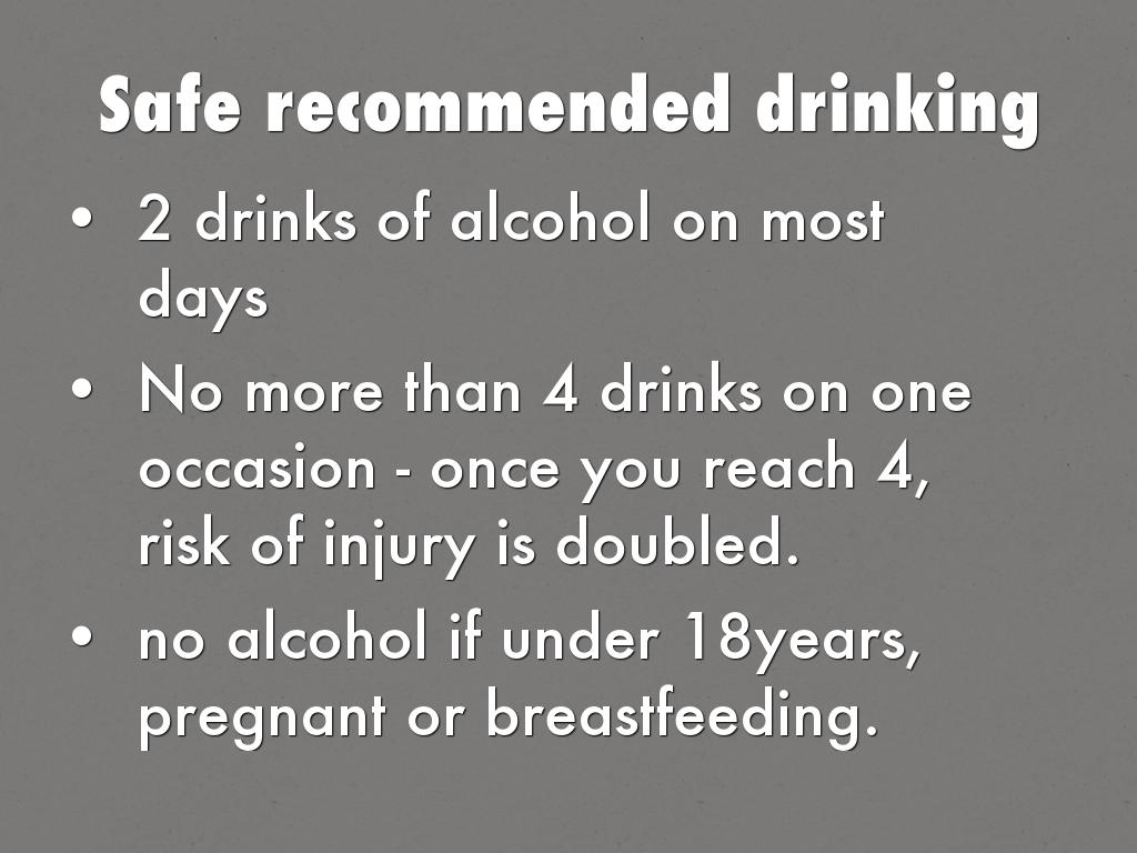 No more than 4 drinks on one occasion - once you reach 4, risk of injury is doubled.