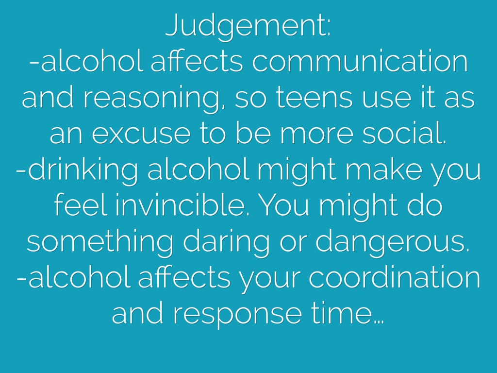 -alcohol affects communication and reasoning, so teens use it as an excuse to be more social.