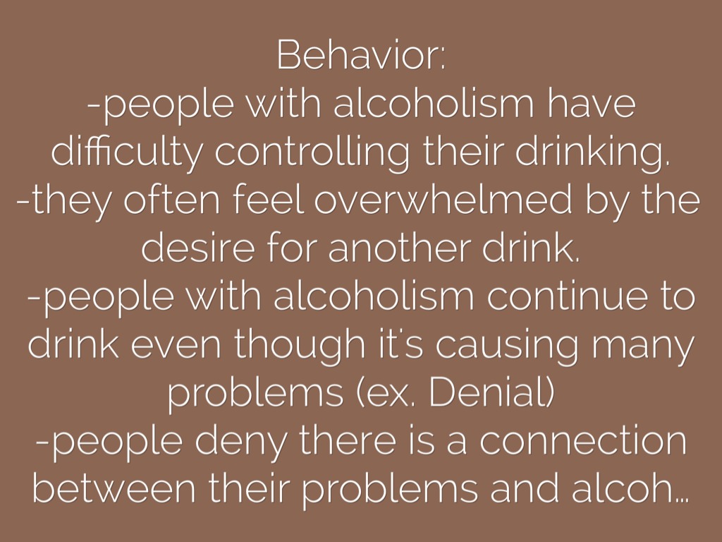 -people with alcoholism continue to drink even though it's causing many problems (ex. Denial)