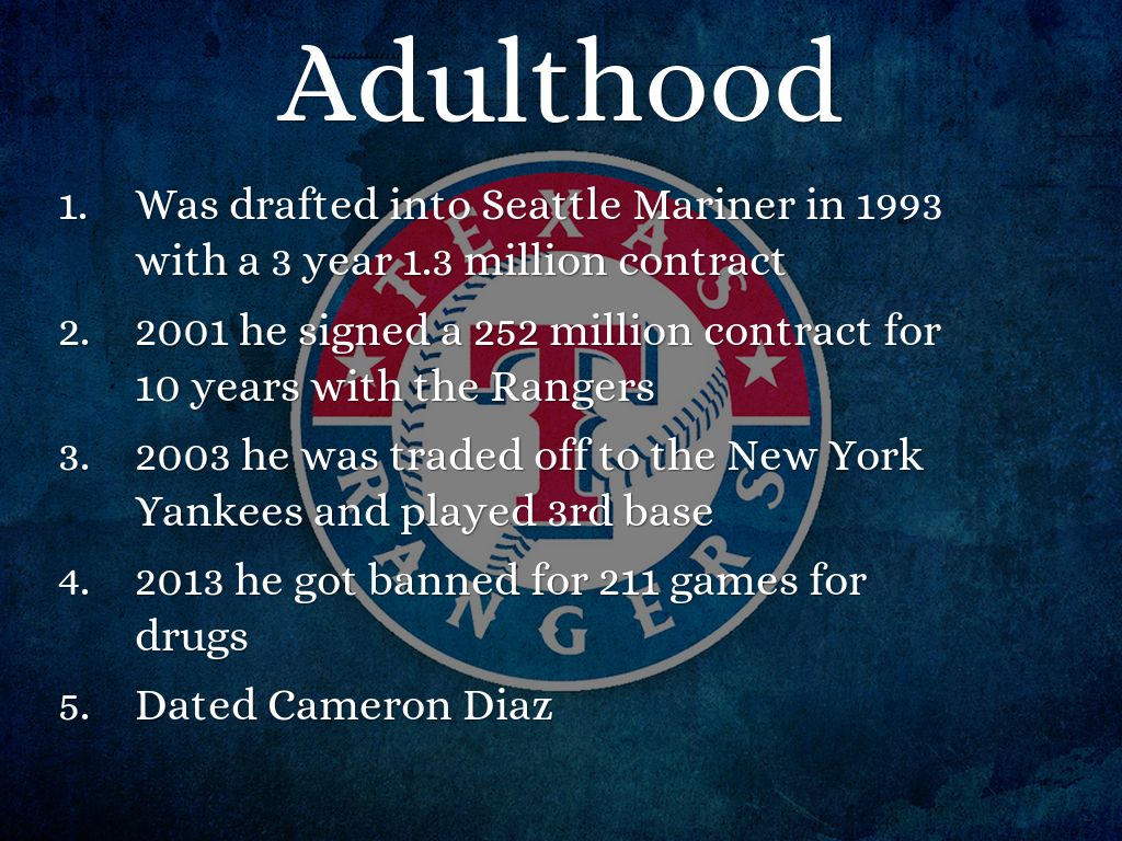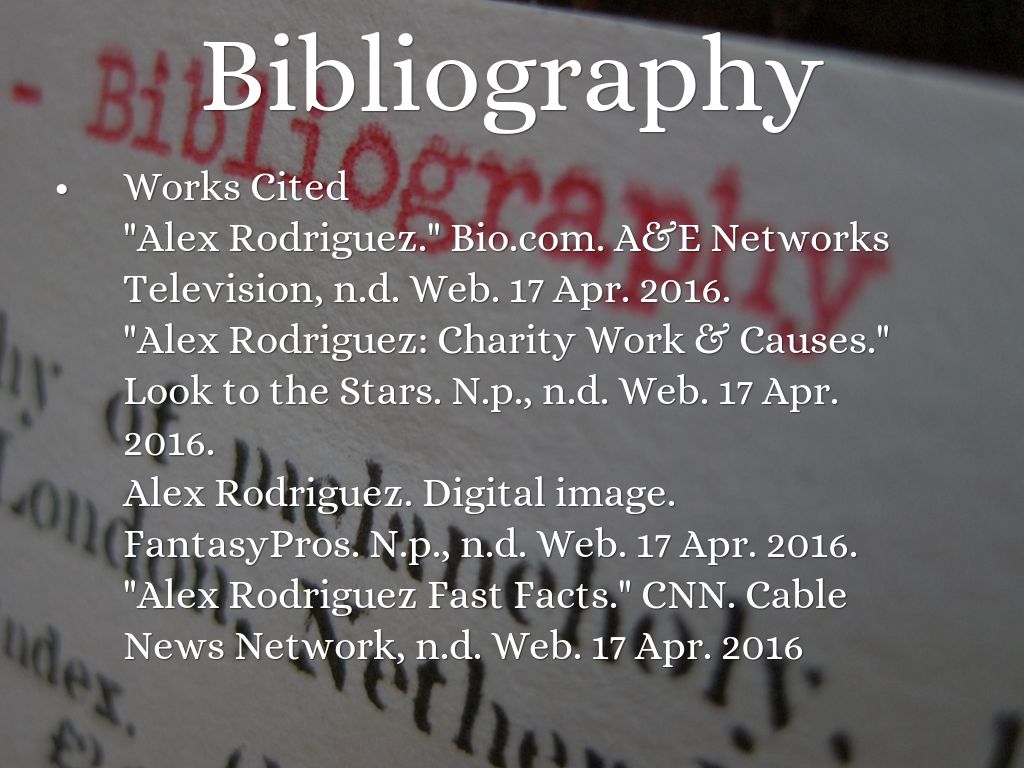 . A&E Networks Television, n.d. Web. 17 Apr. 2016. "Alex Rodriguez: Charity Work & Causes." Look to the Stars. N.p., n.d. Web. 17 Apr. 2016. Alex Rodriguez. Digital image. FantasyPros. N.p., n.d. Web. 17 Apr. 2016. "Alex Rodriguez Fast Facts." CNN. Cable News Network, n.d. Web. 17 Apr. 2016