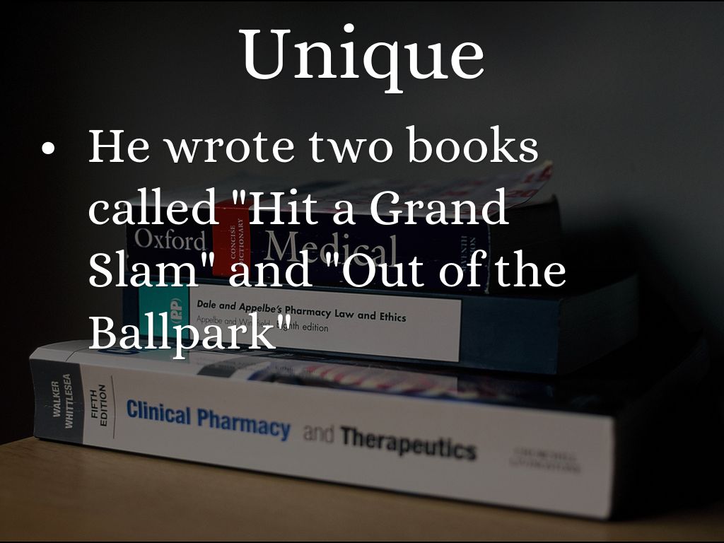 He wrote two books called "Hit a Grand Slam" and "Out of the Ballpark"