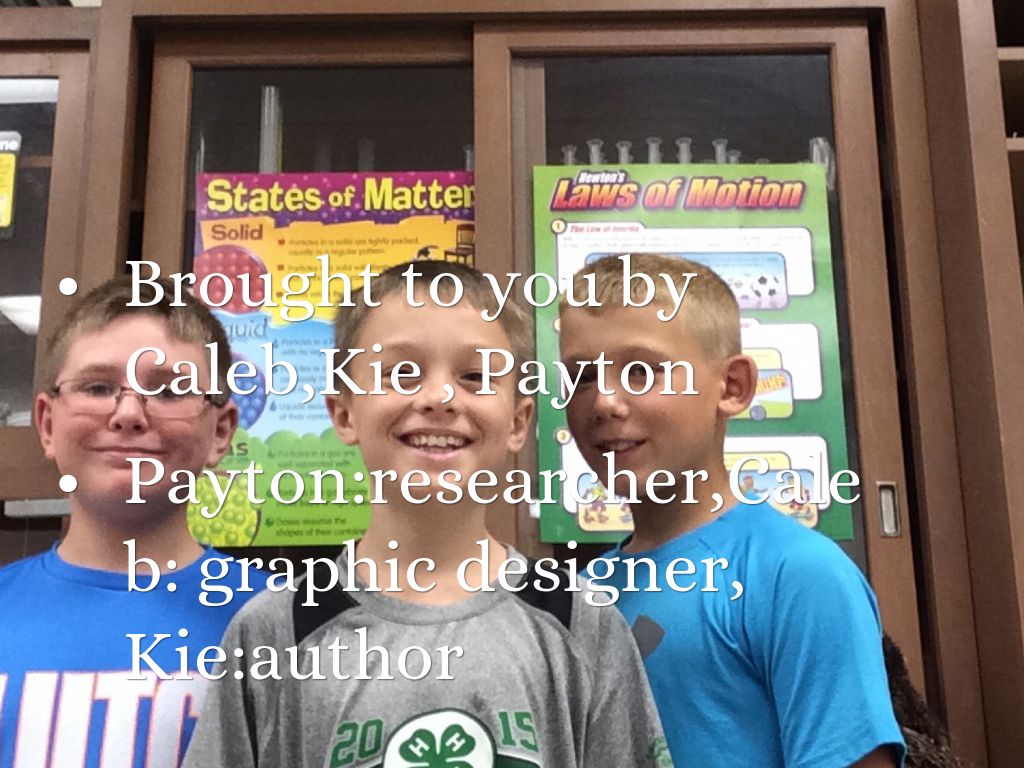 Payton:researcher,Caleb: graphic designer, Kie:author