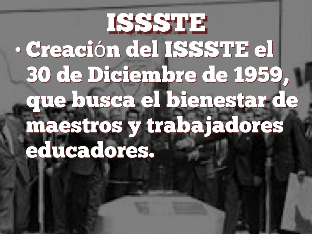 Creación del ISSSTE el 30 de Diciembre de 1959, que busca el bienestar de maestros y trabajadores educadores.