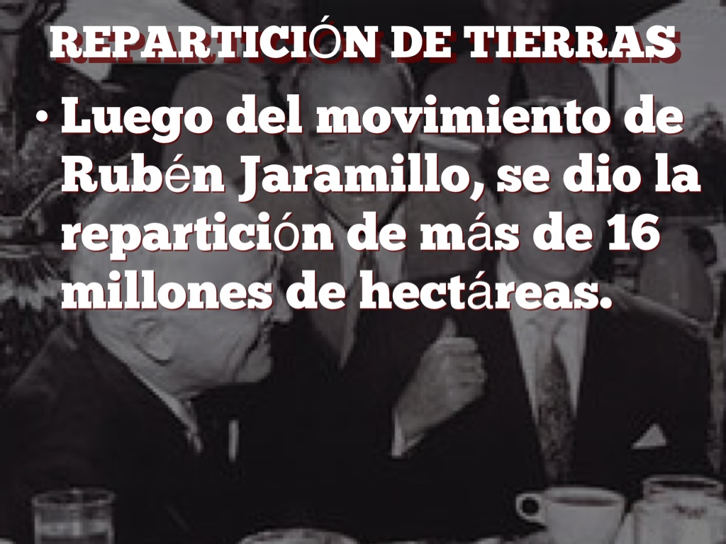 Luego del movimiento de Rubén Jaramillo, se dio la repartición de más de 16 millones de hectáreas.