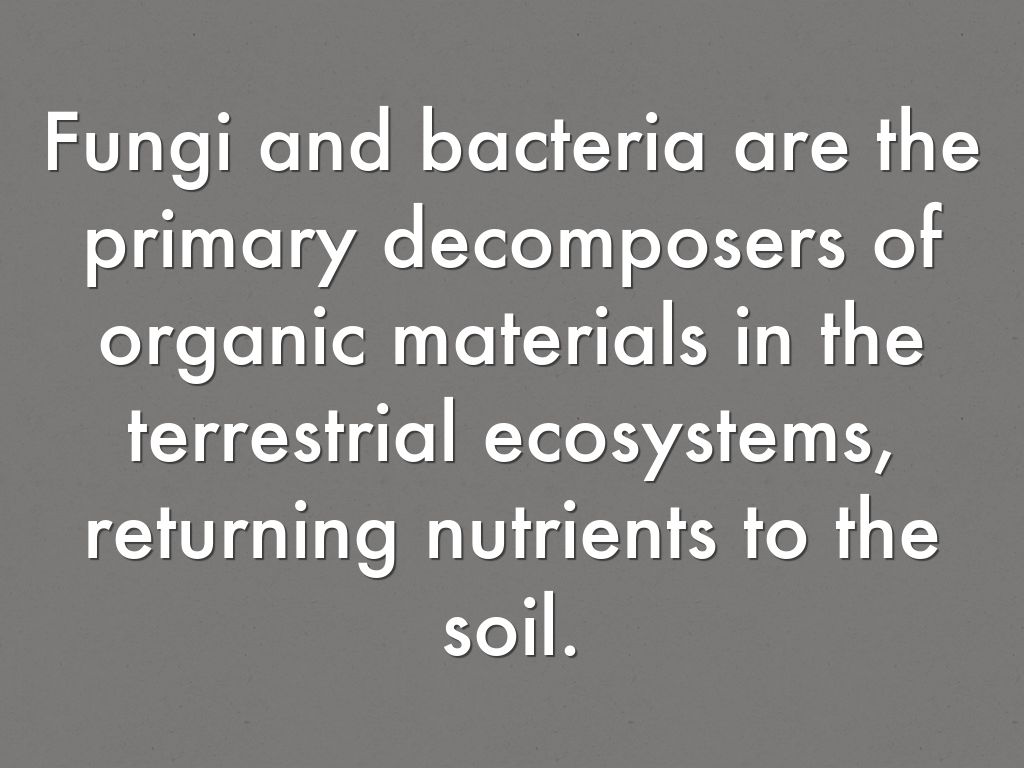 Fungi and bacteria are the primary decomposers of organic materials in the terrestrial ecosystems, returning nutrients to the soil.
