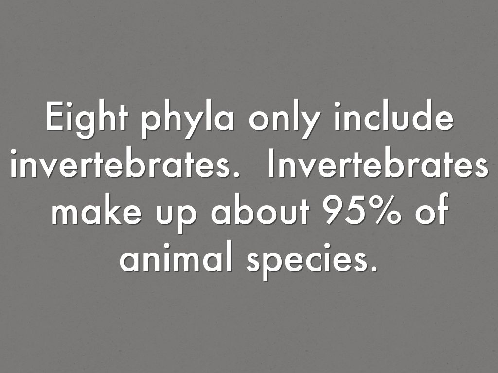 Eight phyla only include invertebrates. Invertebrates make up about 95% of animal species.