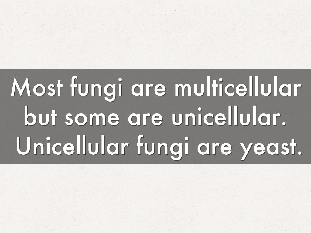 Most fungi are multicellular but some are unicellular. Unicellular fungi are yeast.
