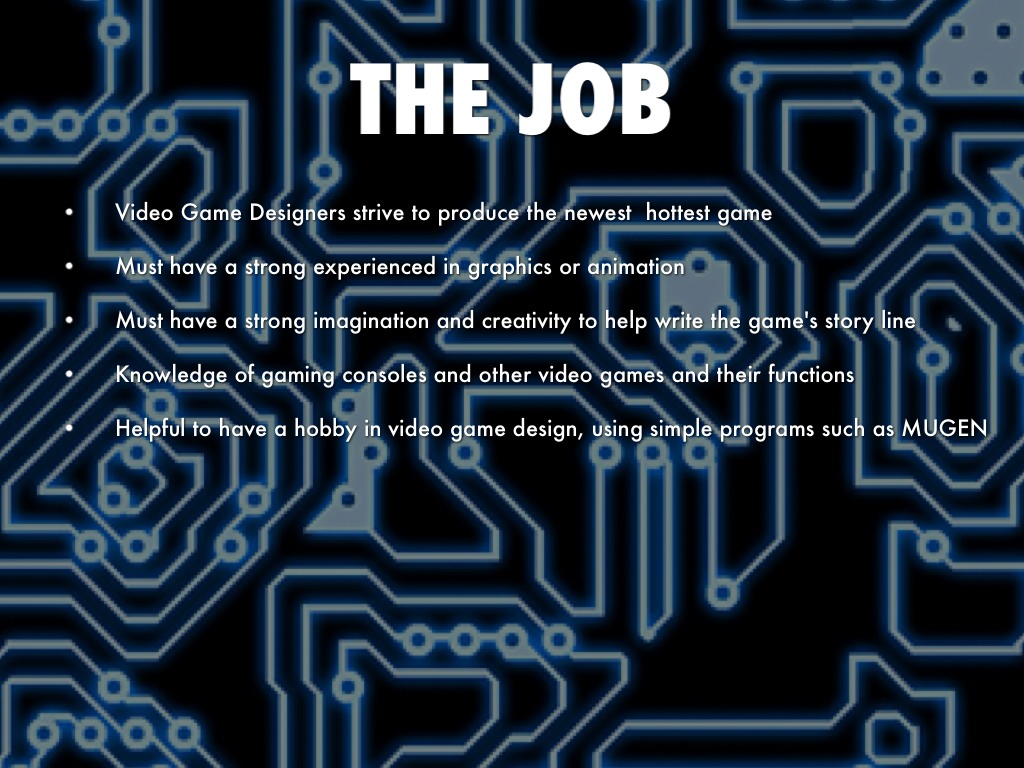 Helpful to have a hobby in video game design, using simple programs such as MUGEN