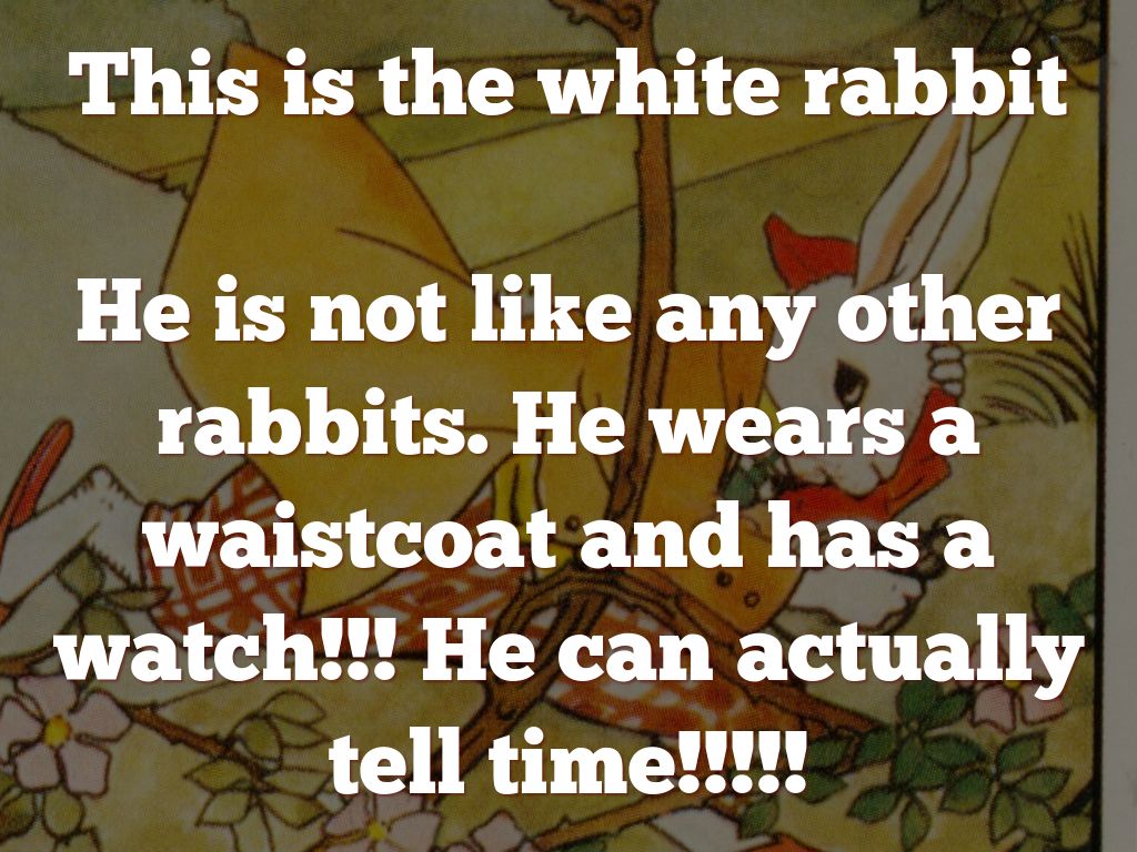 He is not like any other rabbits. He wears a waistcoat and has a watch!!! He can actually tell time!!!!!