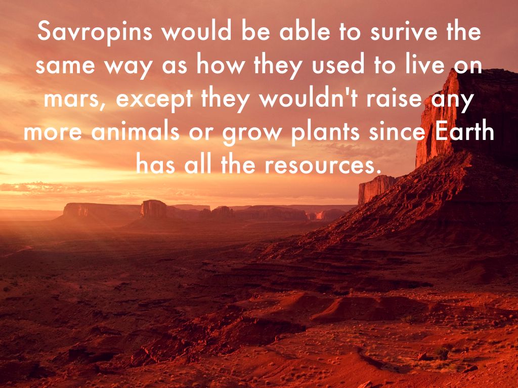 Savropins would be able to surive the same way as how they used to live on mars, except they wouldn't raise any more animals or grow plants since Earth has all the resources.