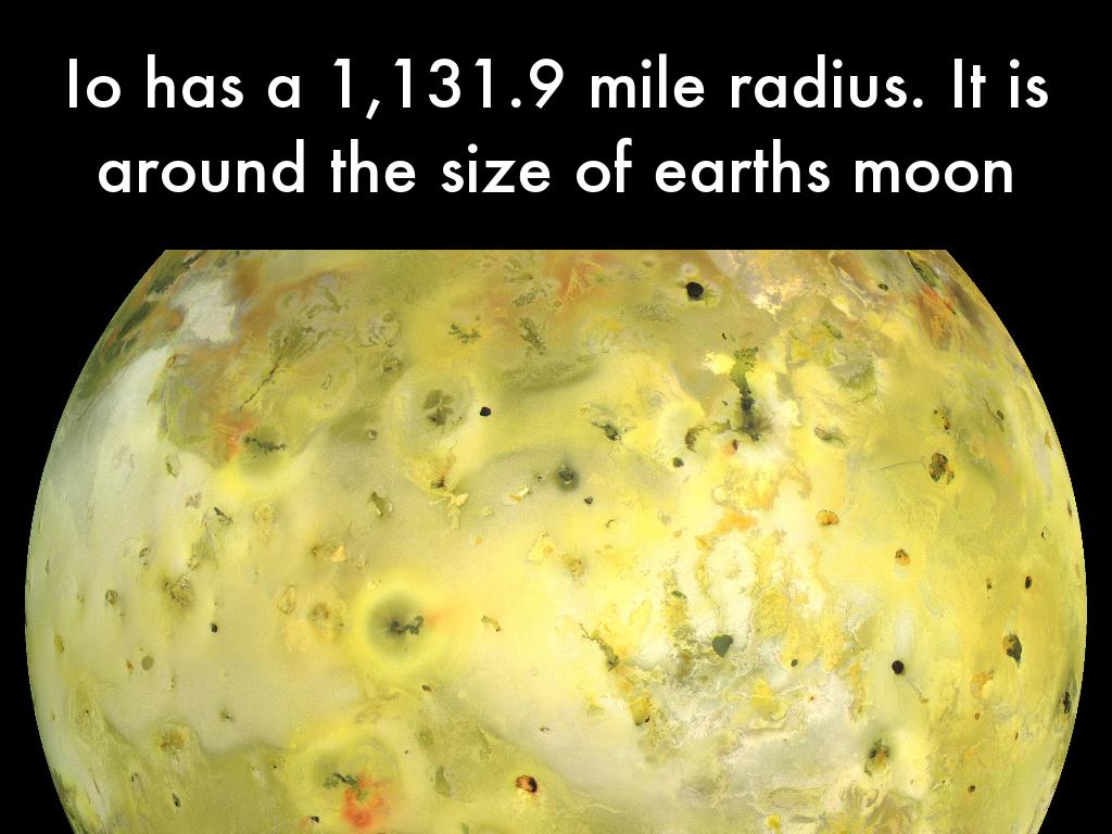 Io has a 1,131.9 mile radius. It is around the size of earths moon