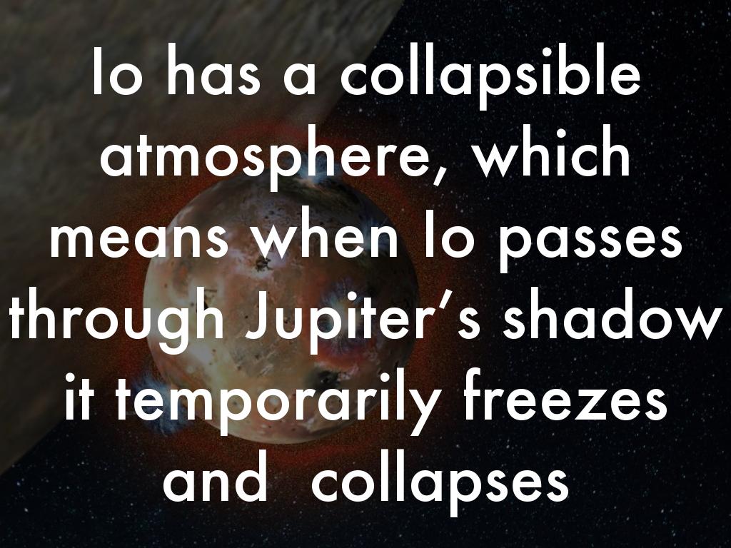 Io has a collapsible atmosphere, which means when Io passes through Jupiter’s shadow it temporarily freezes and collapses