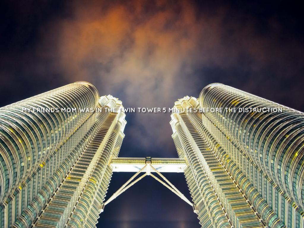 MY FRIENDS MOM WAS IN THE TWIN TOWER 5 MINUTES BEFORE THE DISTRUCTION