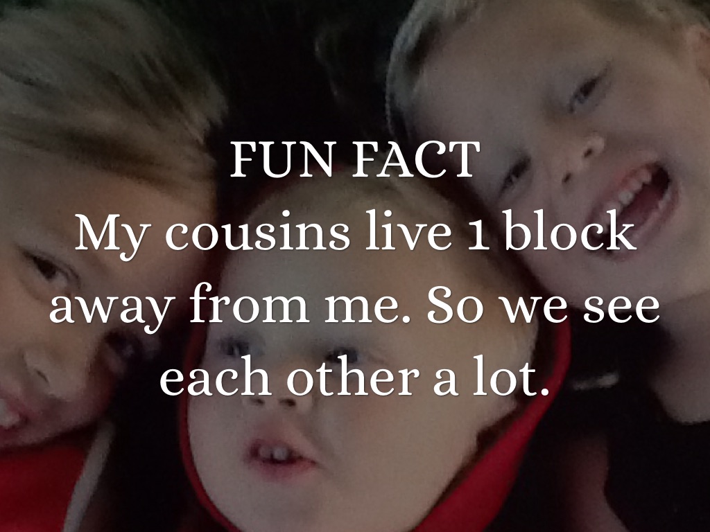 My cousins live 1 block away from me. So we see each other a lot.