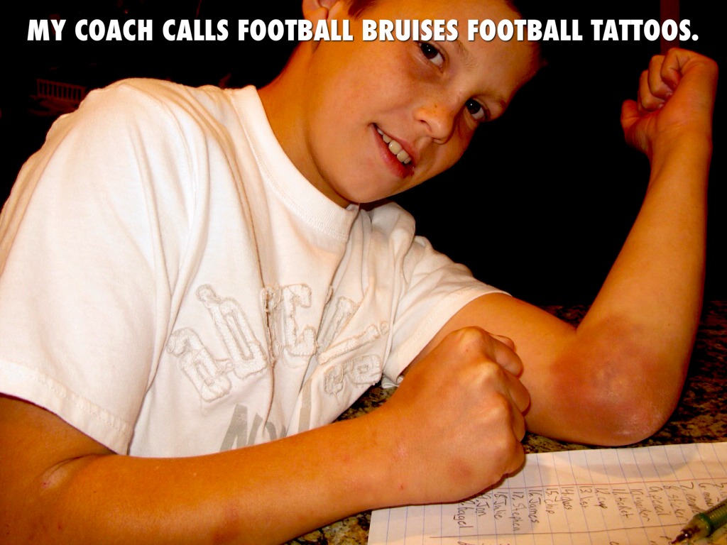 MY COACH CALLS FOOTBALL BRUISES FOOTBALL TATTOOS.