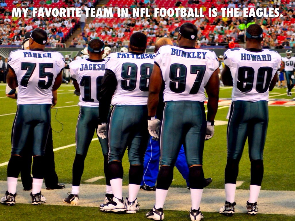 MY FAVORITE TEAM IN NFL FOOTBALL IS THE EAGLES.