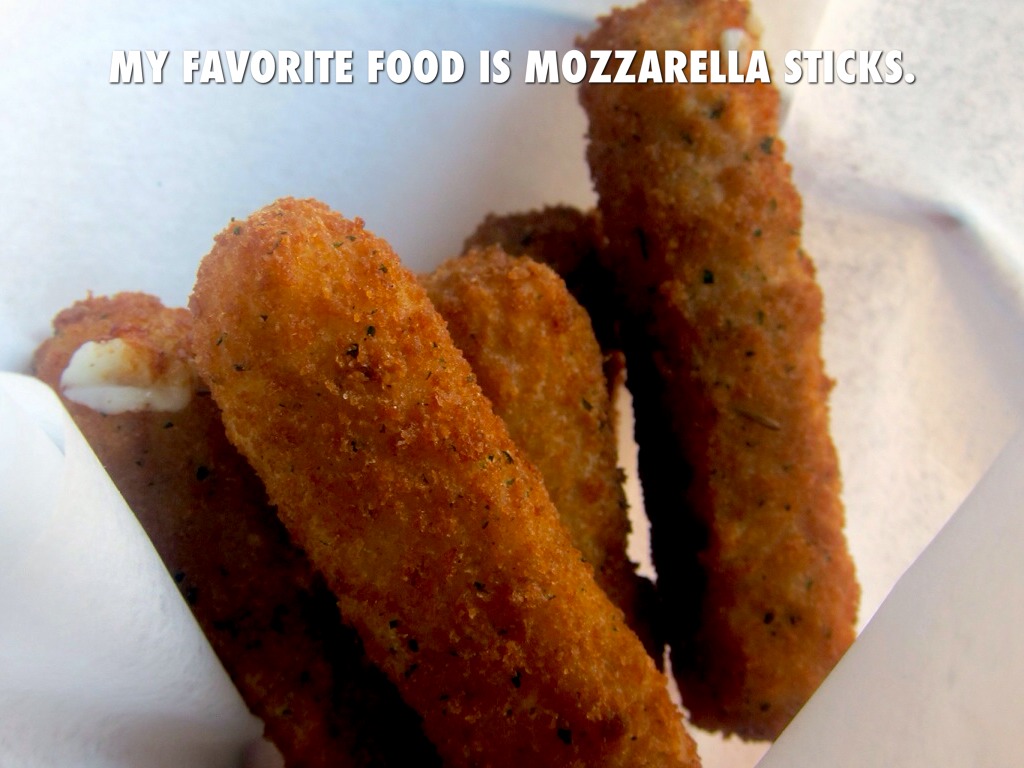 MY FAVORITE FOOD IS MOZZARELLA STICKS.