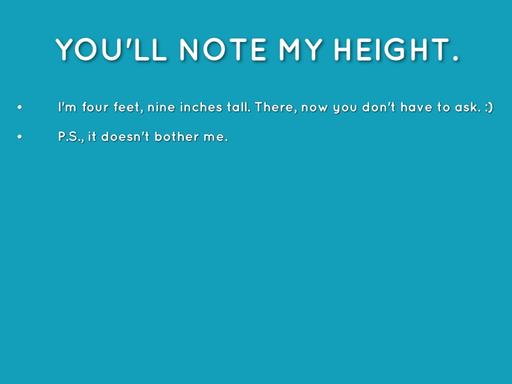 YOU'LL NOTE MY HEIGHT.