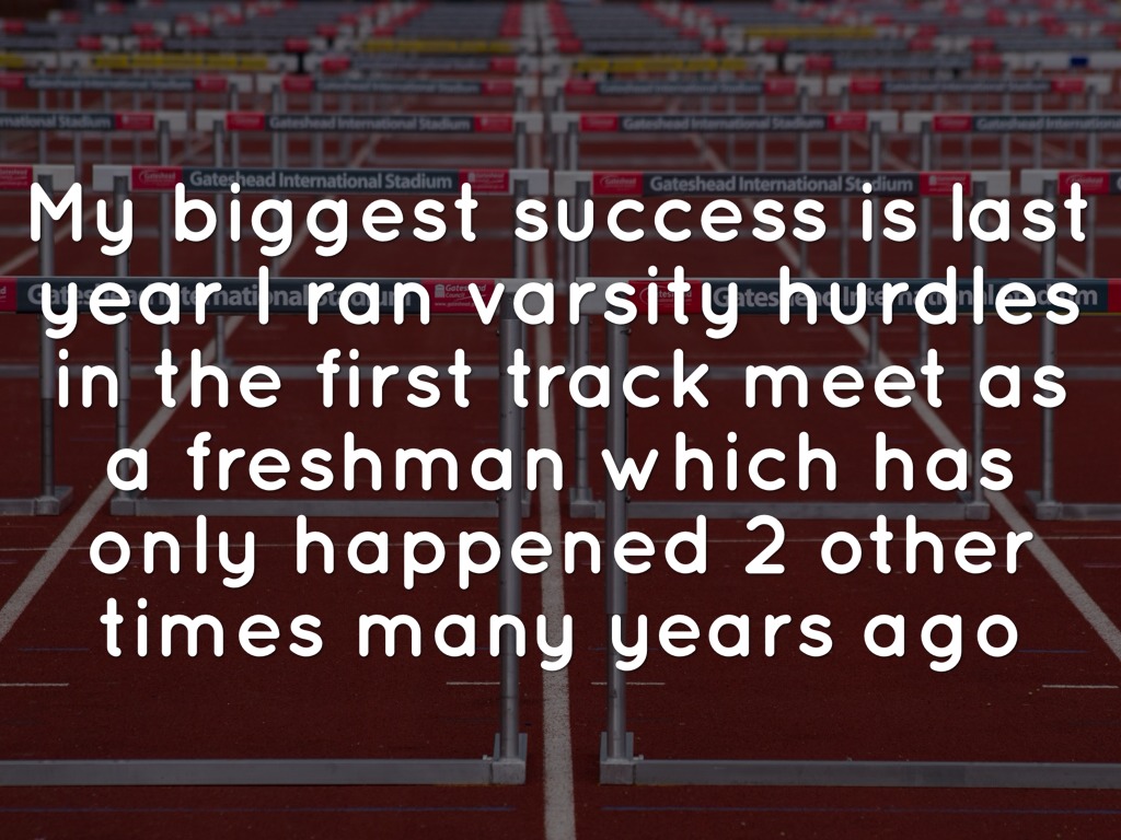 My biggest success is last year I ran varsity hurdles in the first track meet as a freshman which has only happened 2 other times many years ago