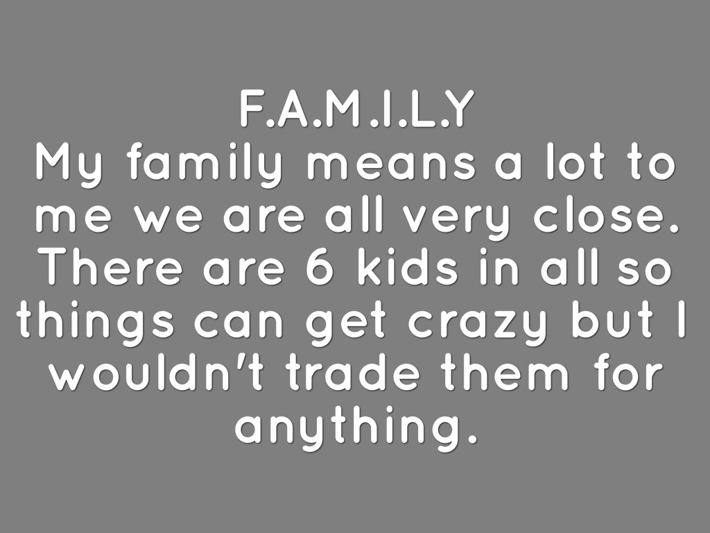 My family means a lot to me we are all very close. There are 6 kids in all so things can get crazy but I wouldn't trade them for anything.