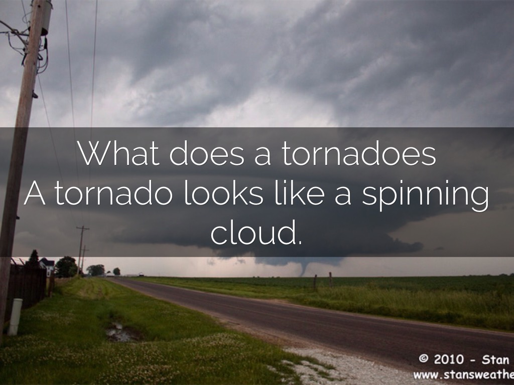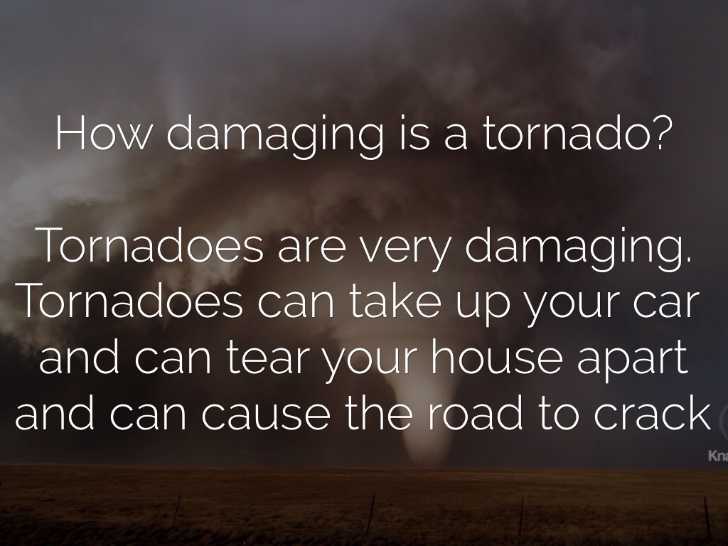 Tornadoes can take up your car and can tear your house apart and can cause the road to crack